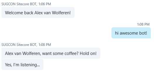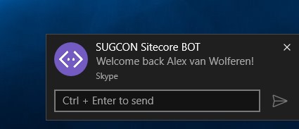 From now on I’m able to have the Bot communicate with my custom build API’s in Sitecore in my security context. Every operation I perform can be executed within in my own UserContext.
