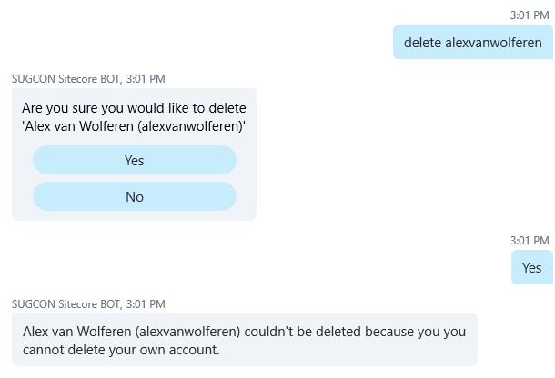 Whether you would like to create, delete, disable or enable users in Sitecore you could also ask the Bot to do that for you in your UserContext.