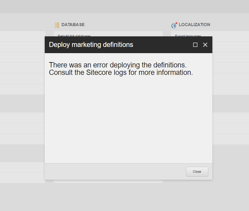 at Sitecore.Shell.Client.Applications.Marketing.Utilities.DeployMarketingDefinitions.DeployMarketingDefinitionsController.DeployDefinitionTypes(String[] definitionTypes)